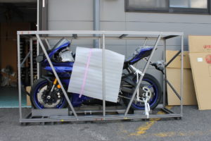 April 12, 2018 1:28 pm | ニューモデル | ysp-om | 0 YZF-R6 入庫しました。お客様の予約分です。これから 箱出し作業です。こんな感じで、檻に囲まれて、到着します。慎重に、檻を、取り除いていきます。ご成約車 で、店内展示しています。2018年は、カラーリングチェンジのみの変更です。相変わらず、かっこいいです!MT-09SPと、フロントフォークが、同じようですので、並べてみました。毎日眺められるように、僕の、目の前に展示です(笑)先行予約分は、完売したのですが、プレスト予約分が、若干あるようですので、購入されたい方は、ご相談くださいね!